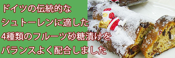 クリスマスには欠かせない、シュトーレン用のミックスフルーツです。